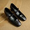 Французские туфли женские весна и осень 2025 года с неглубоким носом, квадратным носком, средним каблуком, толстым каблуком, высокими каблуками, кожаные туфли Мэри Джейн бордового цвета для женщин — купить товар онлайн с бесплатной доставкой по всему миру!