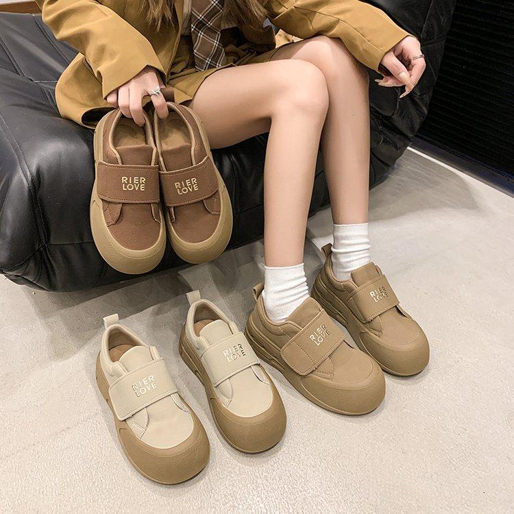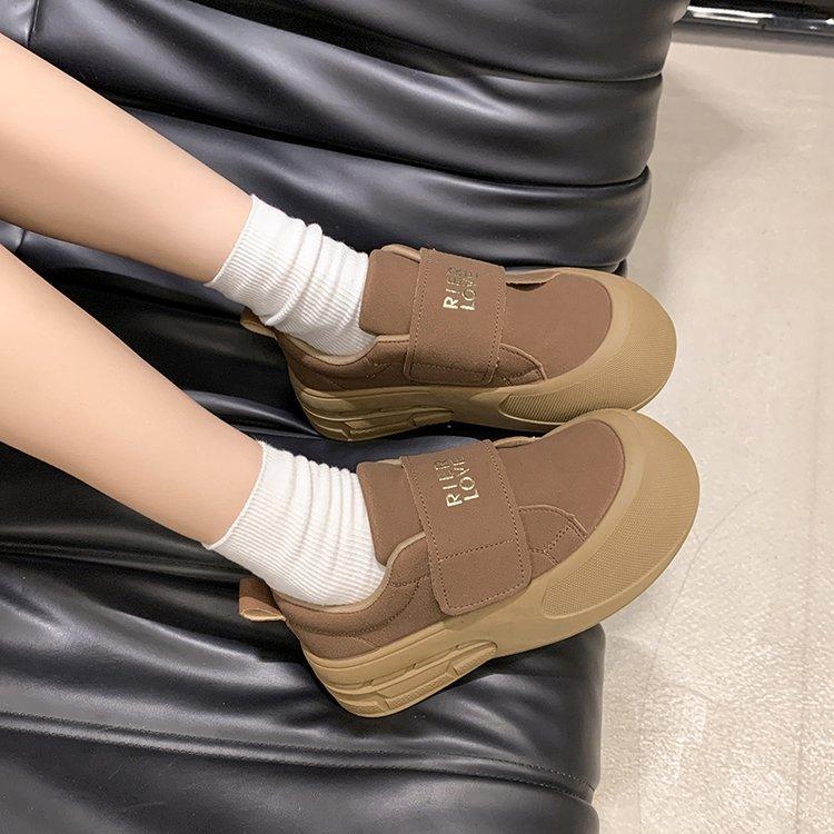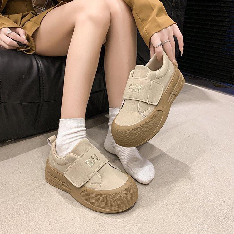 Кроссовки для спорта на платформе Muffin, повседневные, осенние, новые, корейские, уродливые, милые, с большой головой, на липучке, для хлеба, одинарные туфли