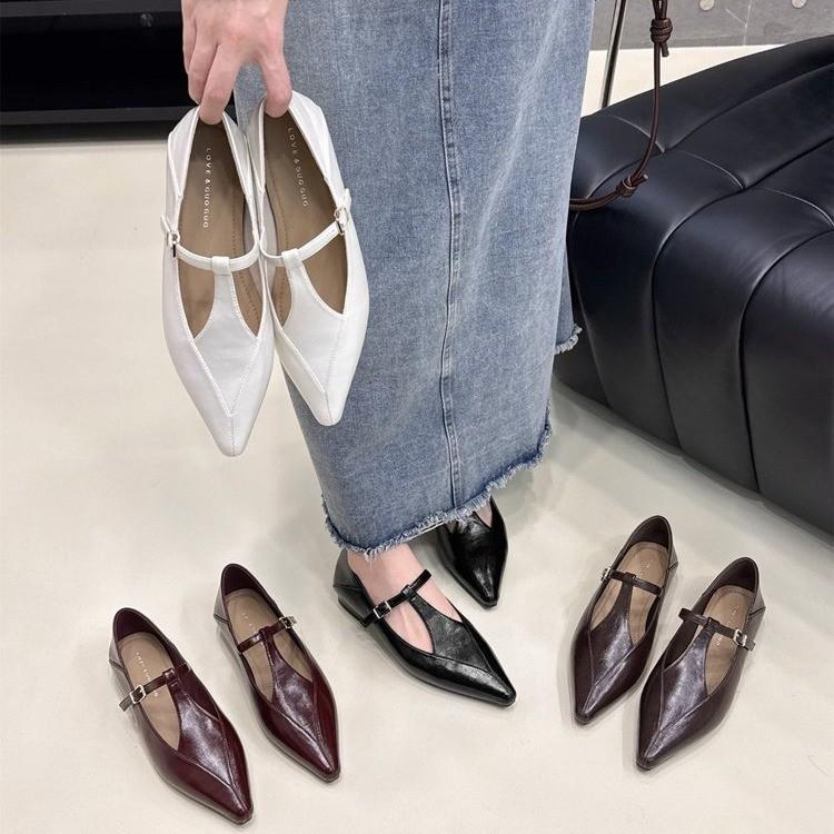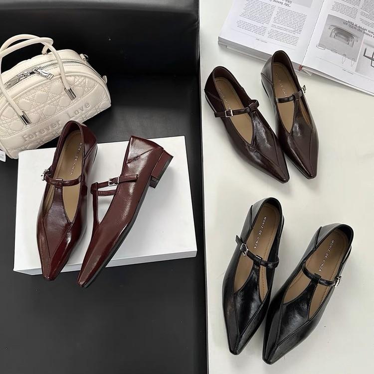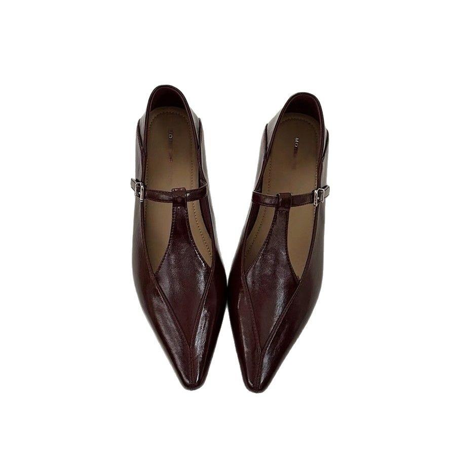 Туфли Мэри Джейн в стиле ретро с острым носком, женские, весна 2025, новые универсальные туфли-одиночки, толстый каблук, нишевая обувь высокого класса на плоской подошве