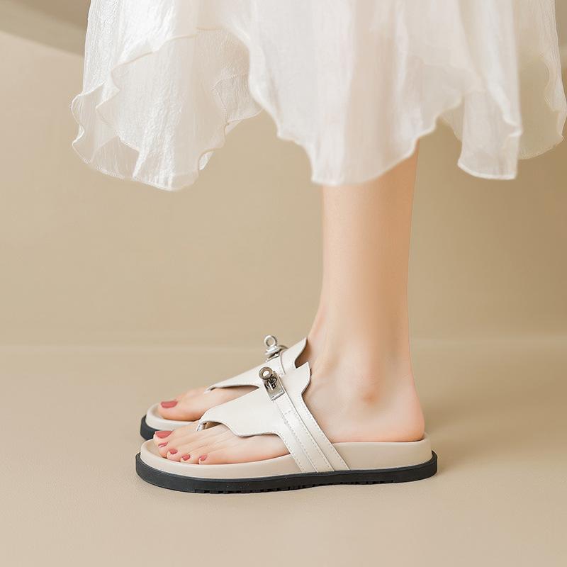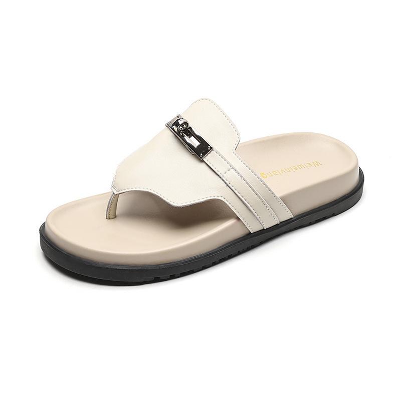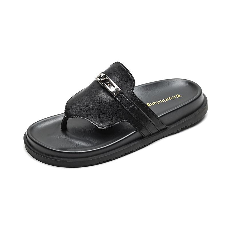 Weiwei girl 6920-1 тапочки на толстой подошве женская кожаная верхняя одежда летние сандалии на плоской подошве шлепанцы с замком