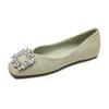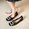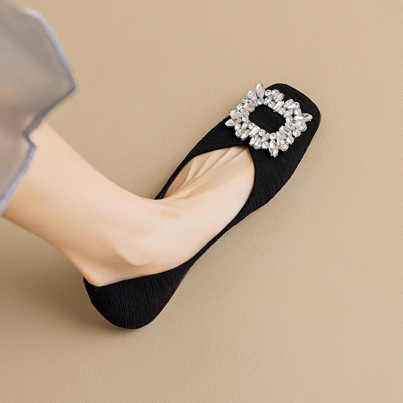 Weiwei Girl 566-1 Square Head Single Shoes Women's Flat Bottom One Pedal Doudou Shoes Rhinestone French Soft Sole Large Size Women's Shoes — купить товар онлайн с бесплатной доставкой по всему миру!