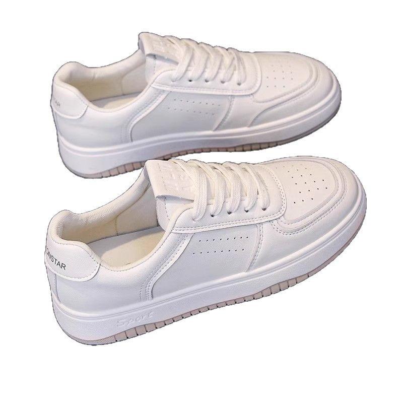 Кожаные белые туфли на плоской подошве, женская обувь, весна-лето 2025, новые универсальные дышащие повседневные спортивные студенческие туфли на мягкой подошве