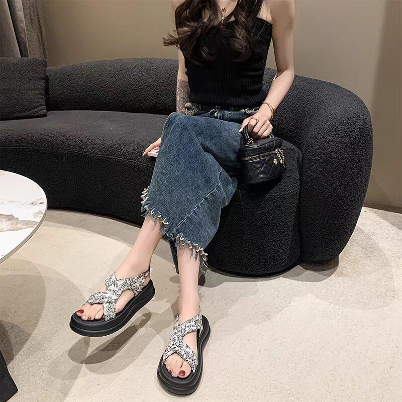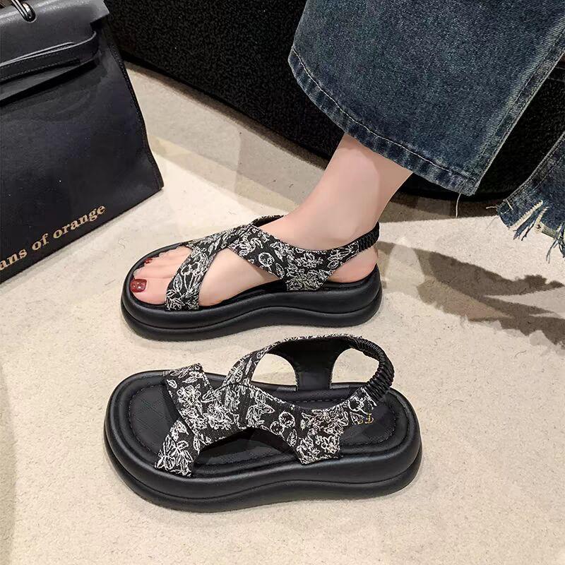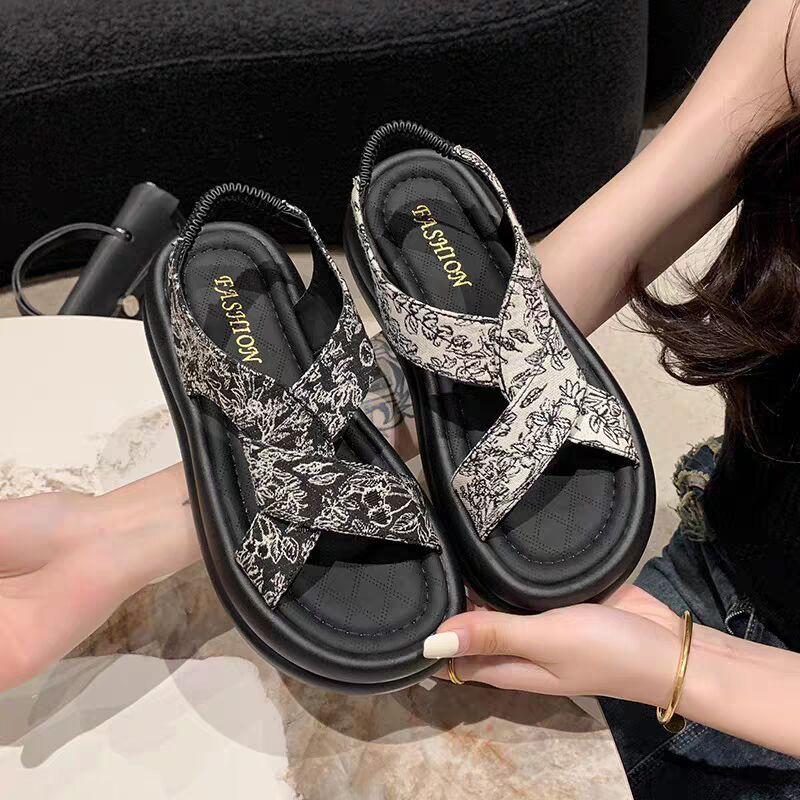 Красивые босоножки на платформе, женская летняя юбка 2024 года, новые повседневные римские пляжные туфли в китайском стиле