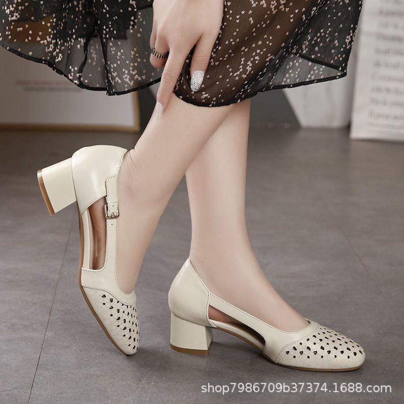 2024 весна новые модные босоножки женская обувь сумка голова босоножки сумка голова толстый каблук 2024 лето одна педаль