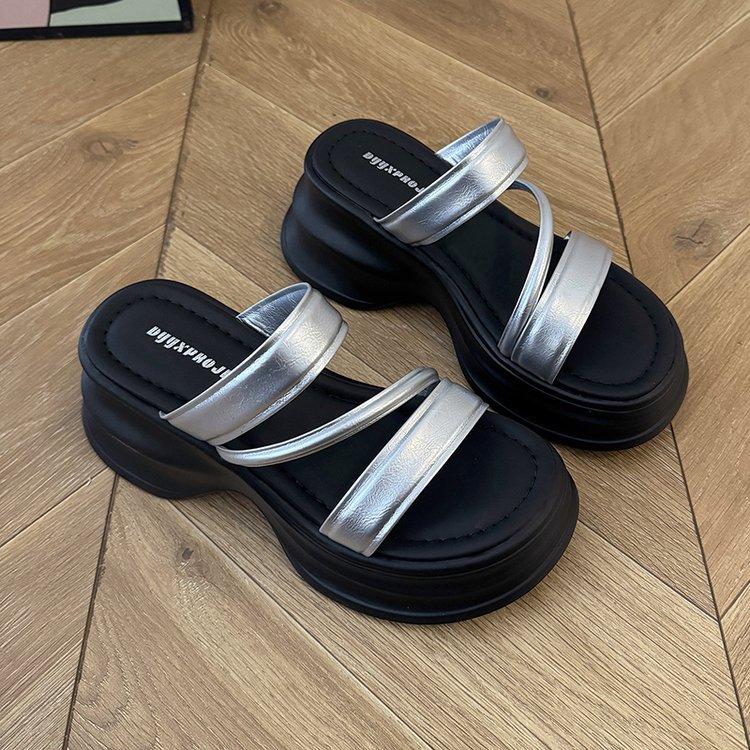 Туфли-тапочки Muffin с толстой подошвой, женская летняя одежда 2025 года, новые модели с юбками, маленькие люди, высокое чувство моды, односложная конструкция