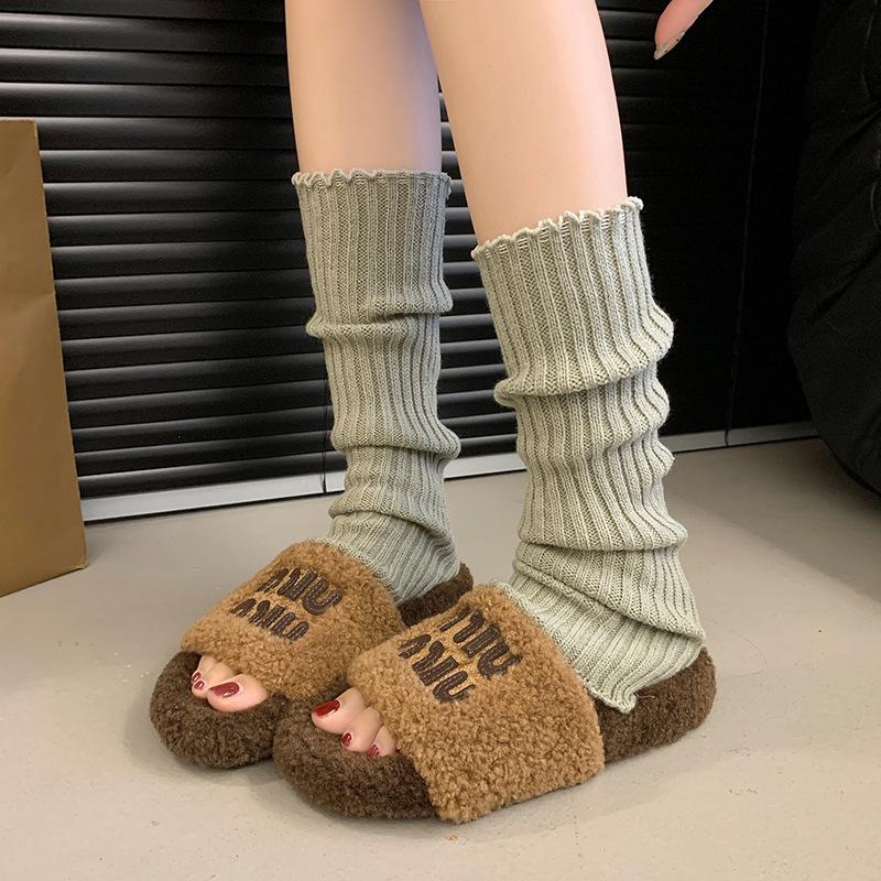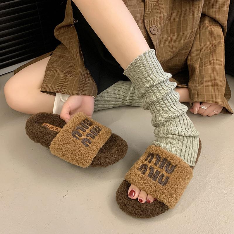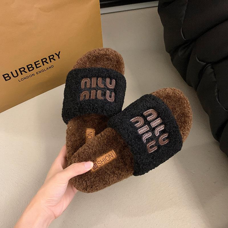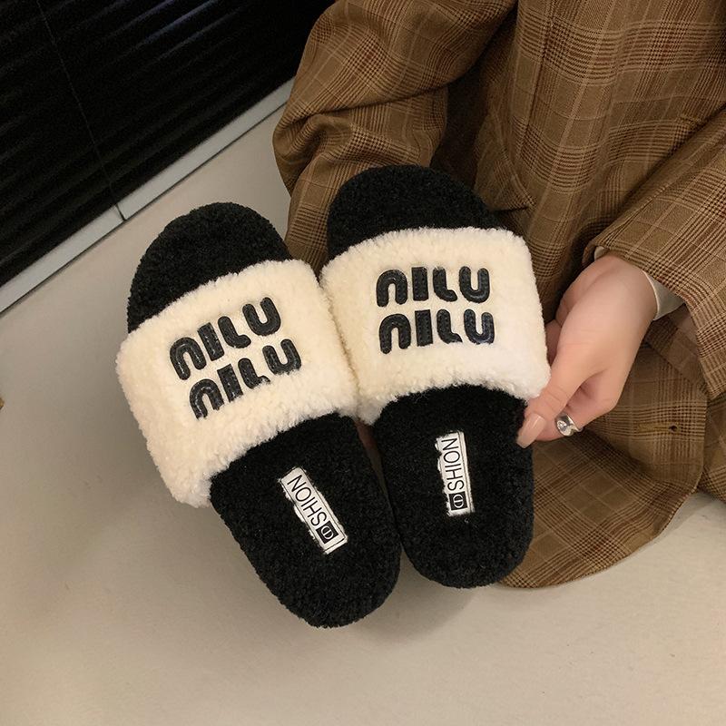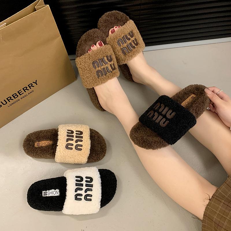 Премиум новые пушистые тапочки с толстой подошвой женские 2024 новые универсальные маленькие ароматные стильные буквы одно слово перетаскивание иностранный стиль удобные
