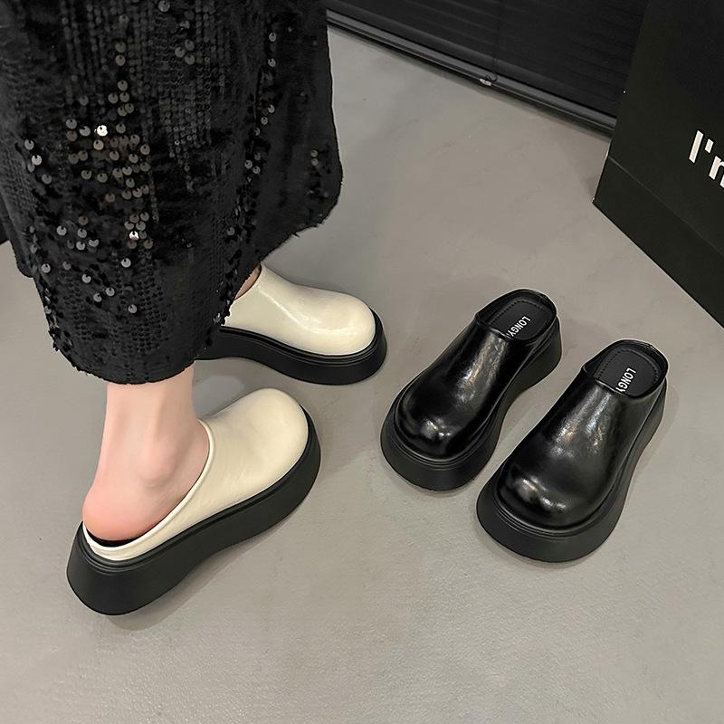 Корейская версия однотонных женских кроссовок Baotou Half Drag 2025 года на платформе с кексами, туфли Muller небольшого размера, увеличивающие рост, классные тапочки