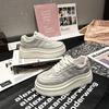 Европейские маленькие белые туфли женские кожаные толстые подошвы показывают тело новые популярные универсальные увеличивающие рост маленькие спортивные туфли для кексов