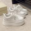 Маленькие белые туфли на толстой подошве для женщин и невысоких мужчин, новая весенняя универсальная обувь на шнуровке 2025 года для студенток, позволяющая увеличить их рост и