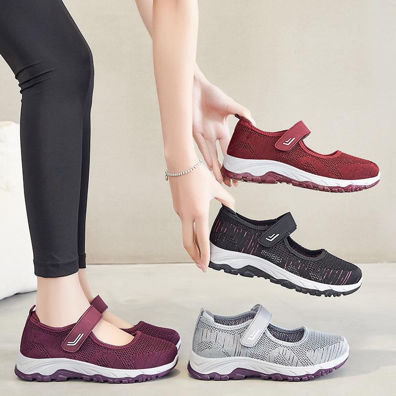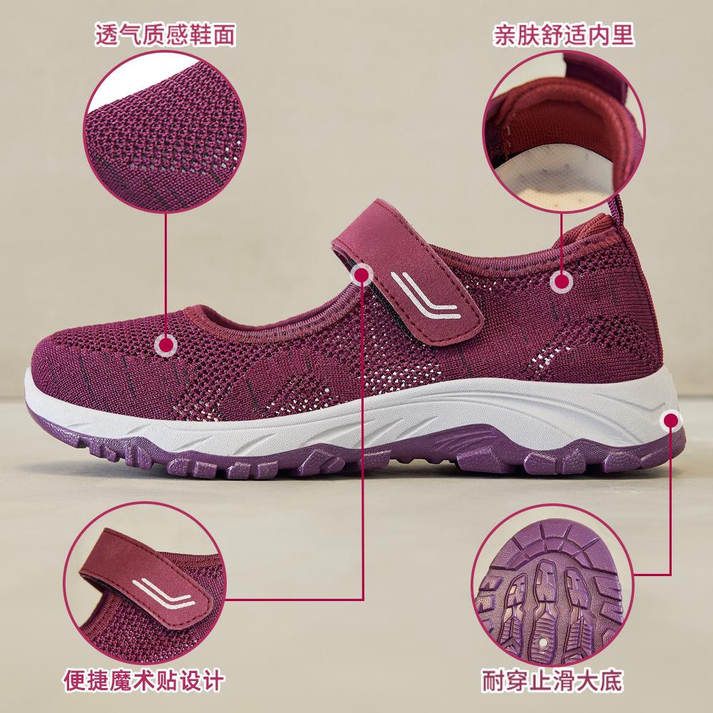 Туфли женские весенние новые импортные женские туфли дышащие неглубокие горловины старые пекинские тканевые туфли одна педаль липучка материнская обувь