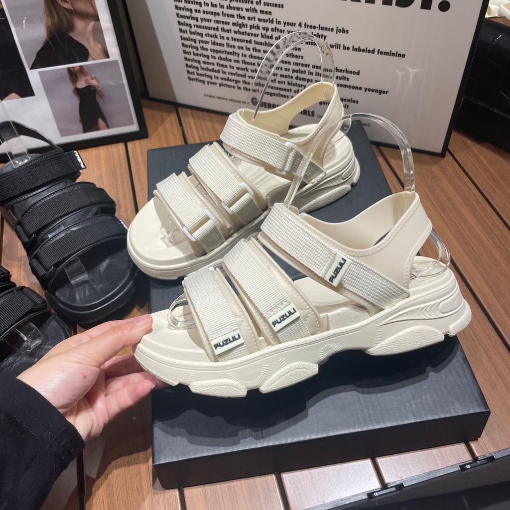 Сандалии на липучке женские летние новые модные повседневные сандалии на платформе с одним словом удобные спортивные сандалии на плоской подошве