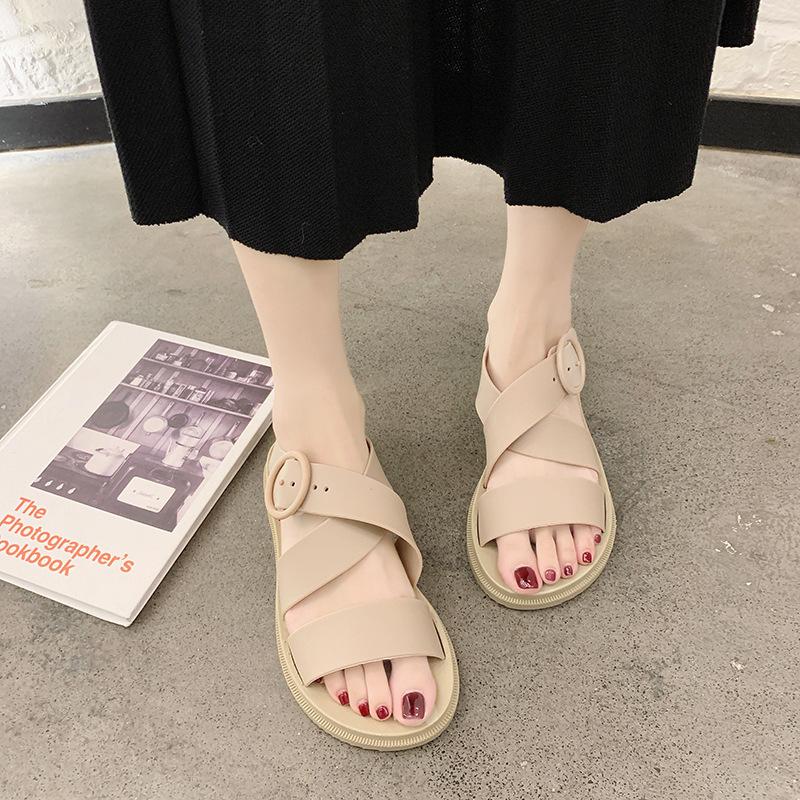 Весна и лето новые сандалии женские повседневные студенческие сандалии на плоской подошве женские сандалии на платформе с пряжкой верхняя одежда