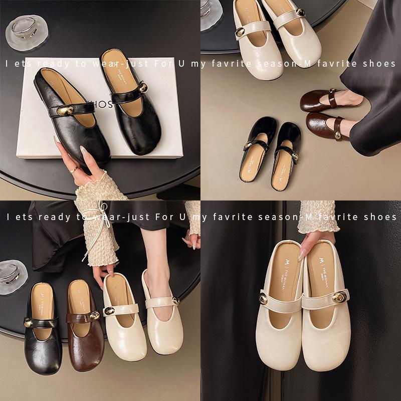 Шлепанцы на плоской подошве для женской уличной обуви 2025 весна и лето новая мягкая кожа ретро высококлассные универсальные с пряжкой на одном ремешке крутые шлепанцы