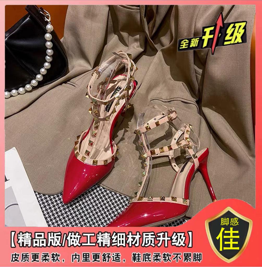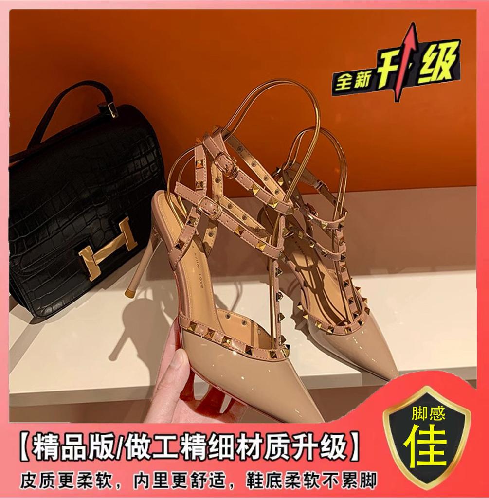 Весна 2024 года, туфли на высоком каблуке с заклепками и острым носком, женские босоножки с пряжкой в виде одного слова, женские свадебные туфли Willow, одинарные туфли на среднем каблуке