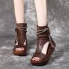 Босоножки на платформе из мягкой кожи, женские, на танкетке в стиле ретро, лето 2025, новые универсальные, с завышенной талией, сандалии в этническом стиле для мам
