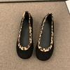 Женские балетки Niche Retro с круглым носком и неглубоким горлом, новинка 2024 года, корейская версия, замшевые балетки с леопардовым принтом на мягкой подошве, туфли для бабушки
