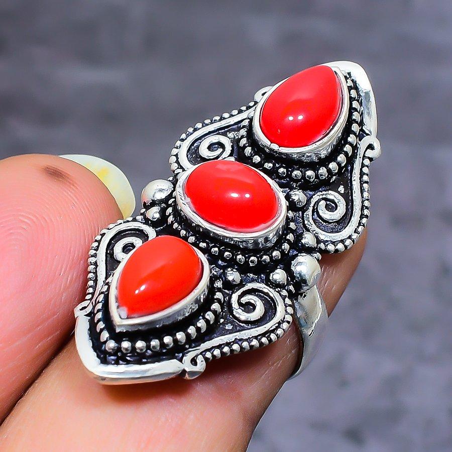 Итальянский красный коралл, ювелирное кольцо ручной работы из стерлингового серебра 925 пробы, размер 5,5 V8I26