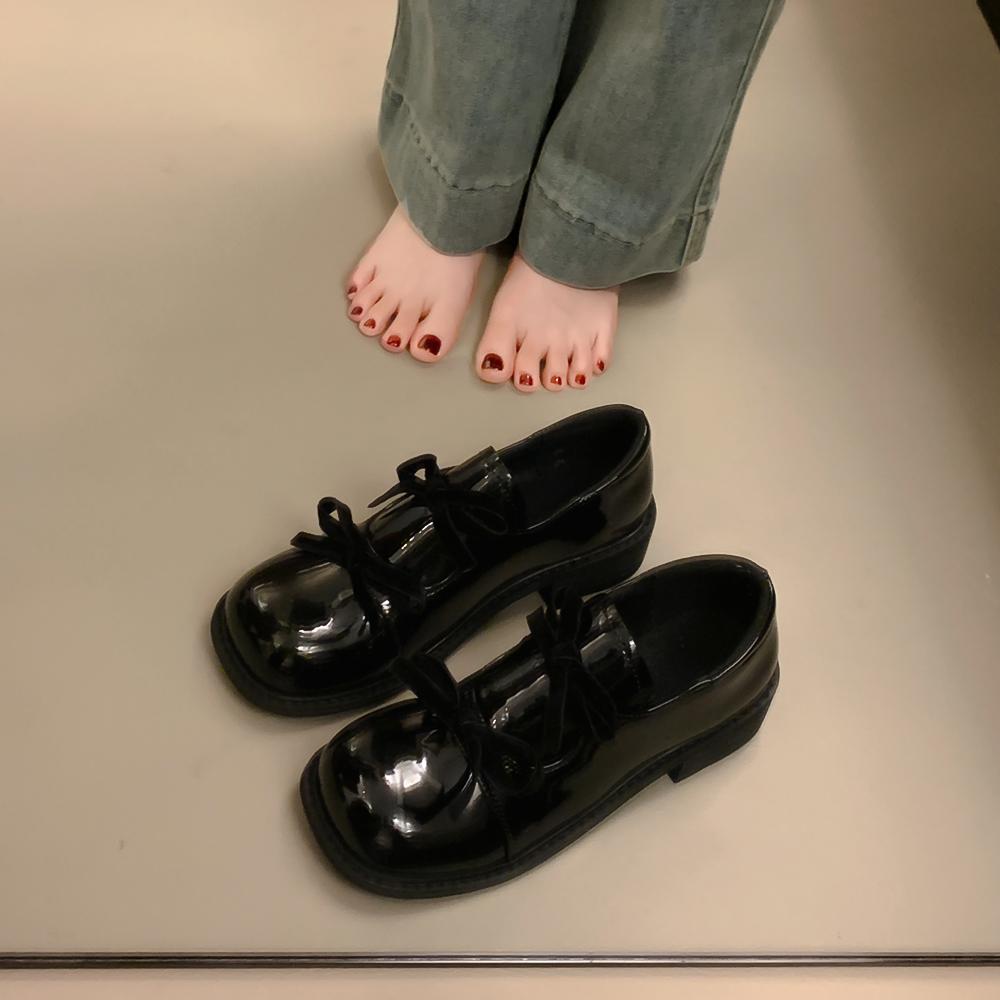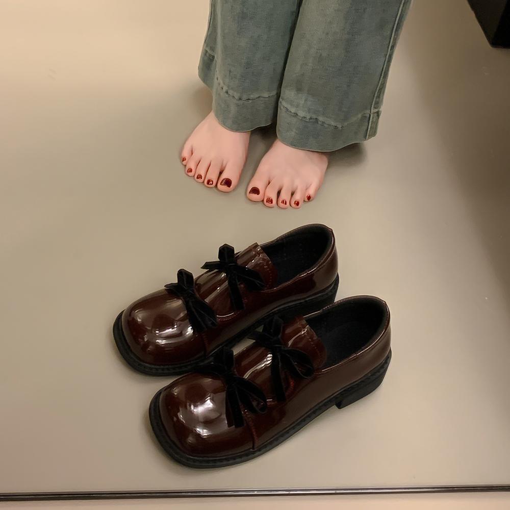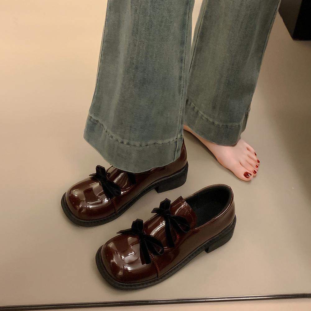 Средний толстый каблук 2025 под круглый носок Мори женщины один ремешок бант Мэри Джейн одинарные туфли британский стиль маленькие кожаные туфли женские весна