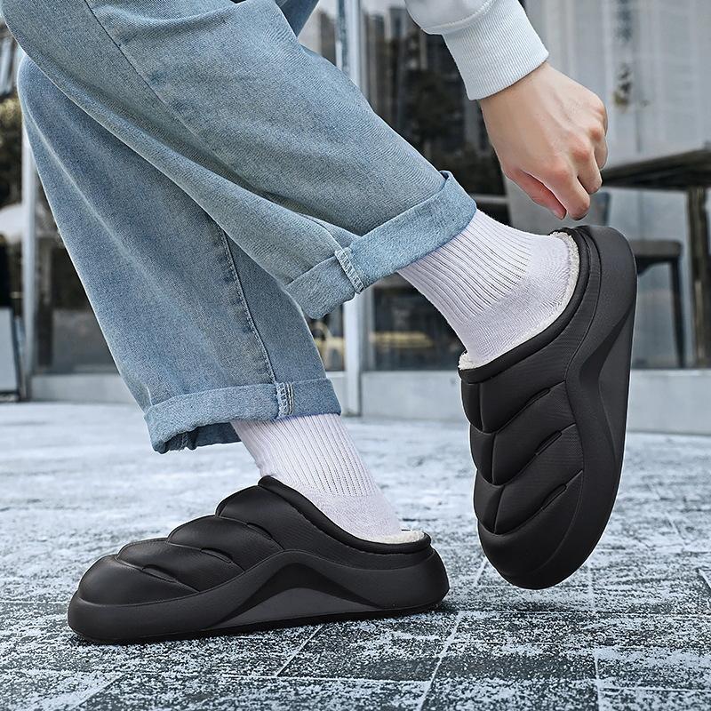 Иностранная торговля домашняя толстая подошва наступая на дерьмо хлопковые тапочки мужские зимние комнатные теплые полпачки тапочек женская пара