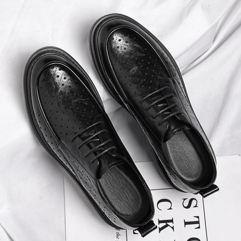 Крутые кожаные туфли 2025 года, лето, новые дышащие мужские деловые повседневные кожаные туфли, полые сандалии, туфли с отверстиями