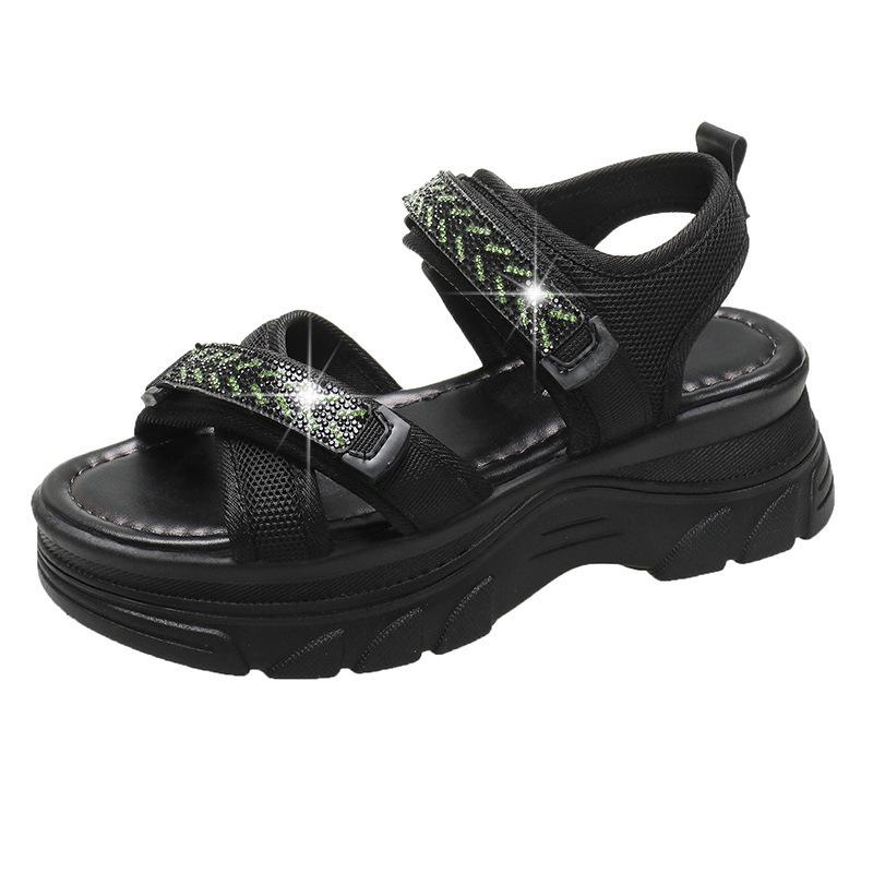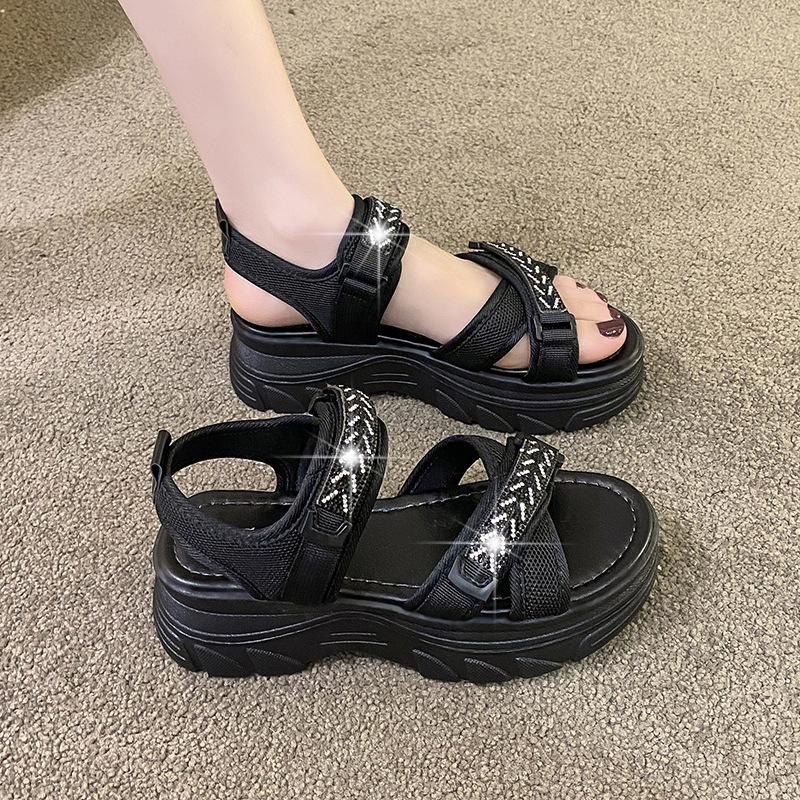 Корейская версия сандалий в спортивном стиле женские сандалии с открытым носком, дышащие, со стразами, на толстой подошве, с липучками, женские пляжные сандалии