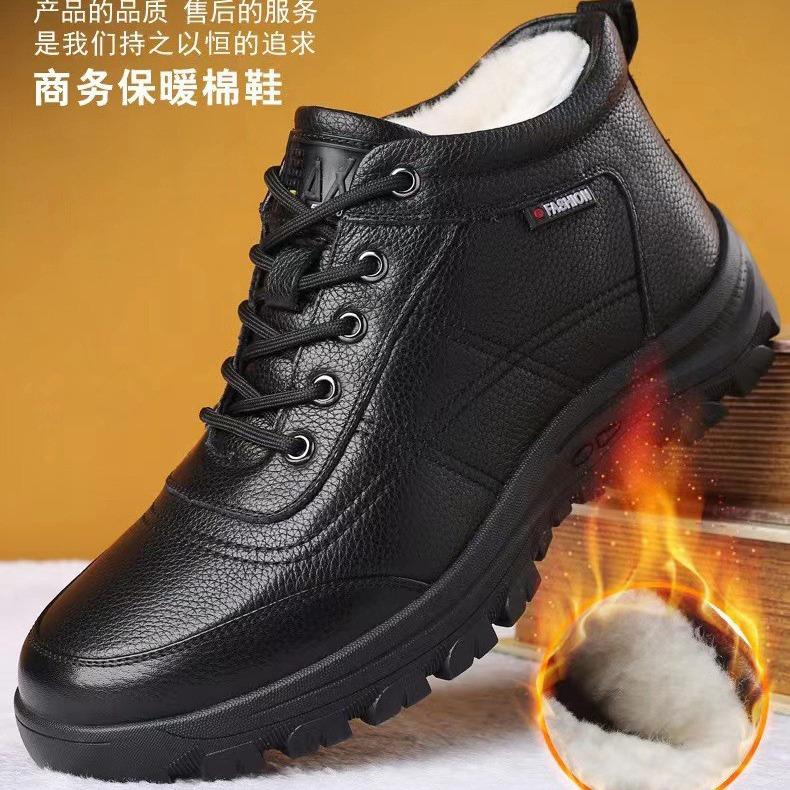Новые зимние мужские туфли из бархата и утолщенной шерсти из хлопка, на шнуровке, мужские повседневные туфли из кожи и хлопка, теплые универсальные туфли из хлопка