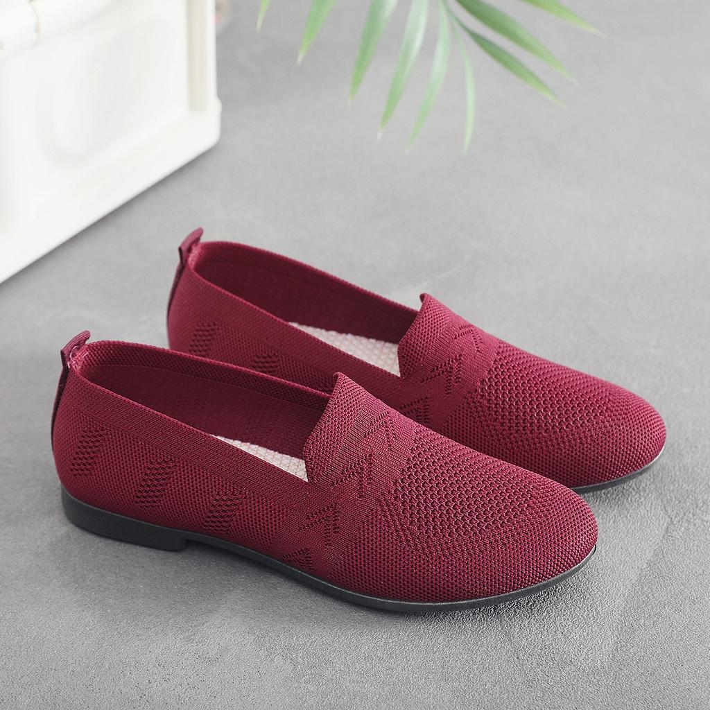 Верхние одинарные туфли из ткани, женские однотонные сетчатые туфли, летающие плетеные повседневные туфли для мам с круглым носком и плоским дном, рабочие одинарные туфли с одной педалью