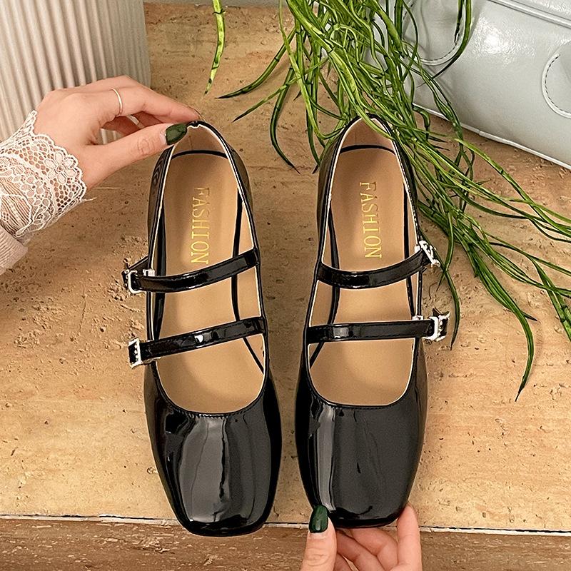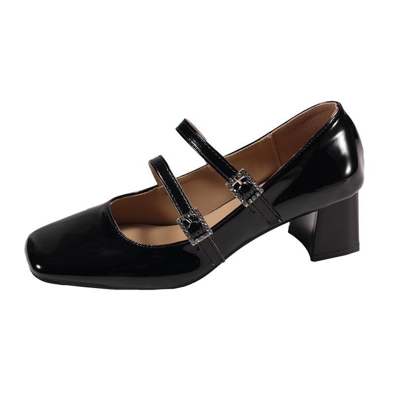 Черные туфли-лодочки в стиле ретро с квадратной головкой и толстым каблуком, женские, новинка 2025 года, весна-осень с юбкой, универсальные туфли «Мэри Джейн» во французском стиле