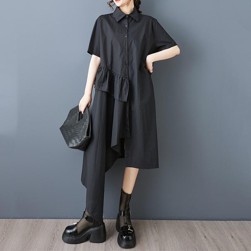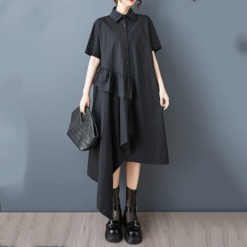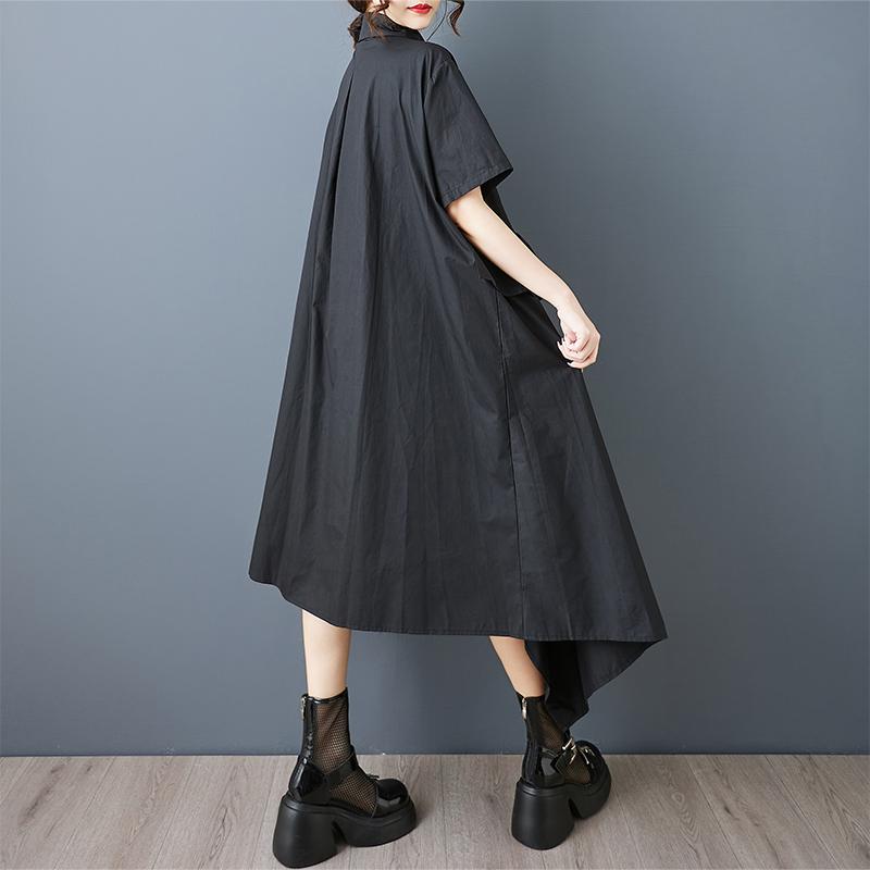 Короткий рукав Большой размер черный хлопок винтажные новые платья для женщин повседневное свободное длинное летнее платье-рубашка