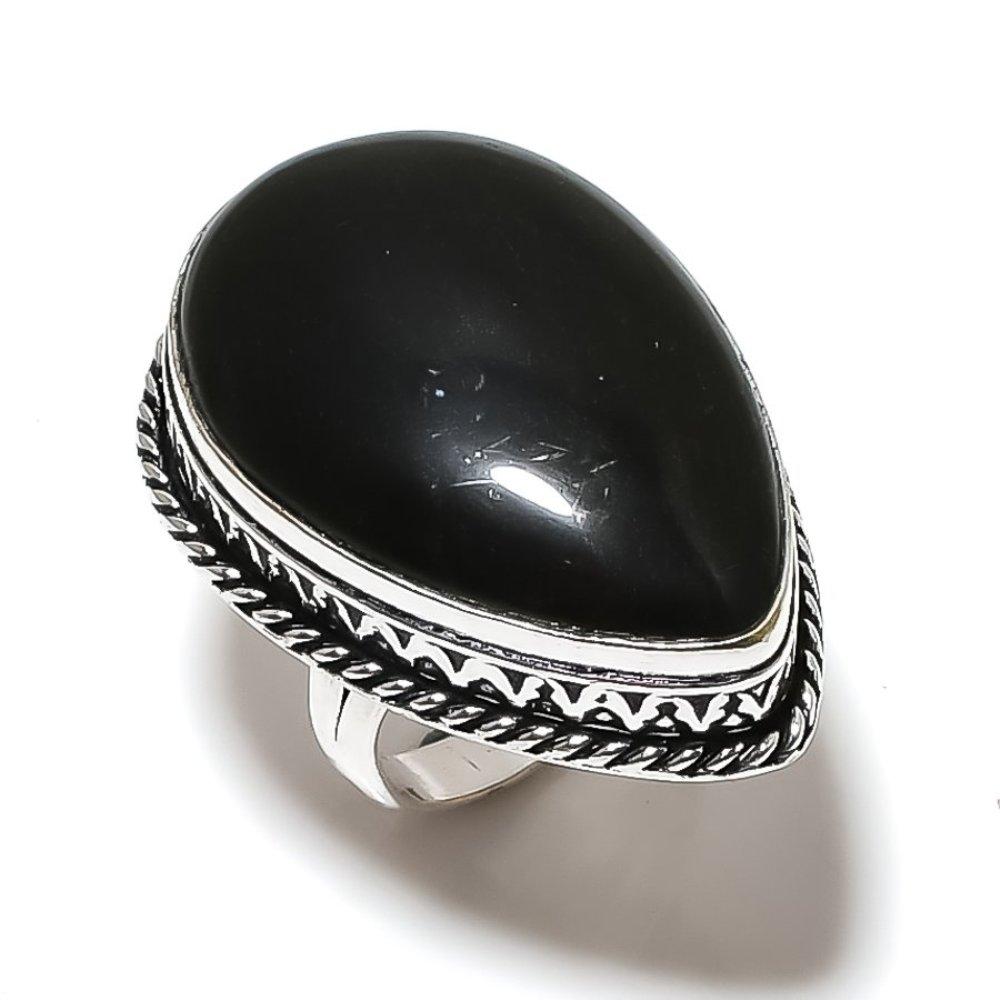 Кольцо из серебра 925 пробы с черным ониксом ручной работы, размер 8 г7O69 — купить товар онлайн с бесплатной доставкой по всему миру!