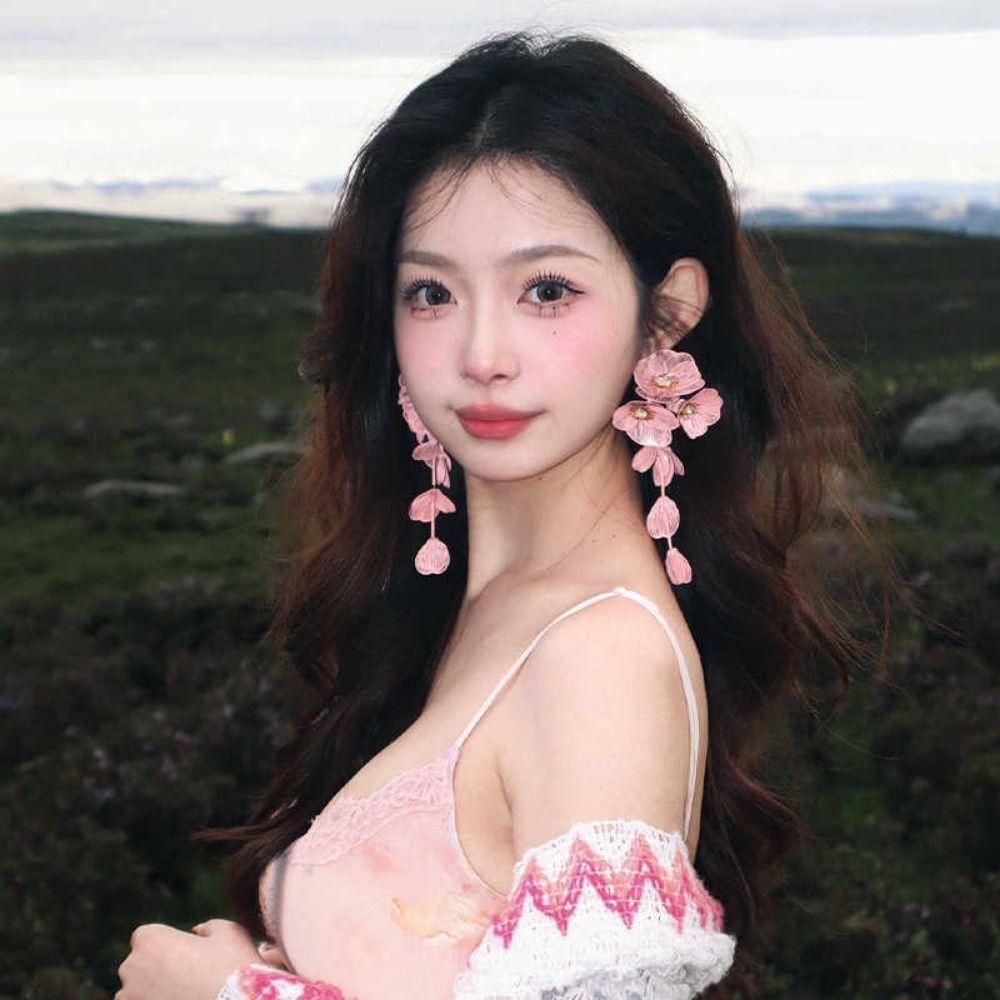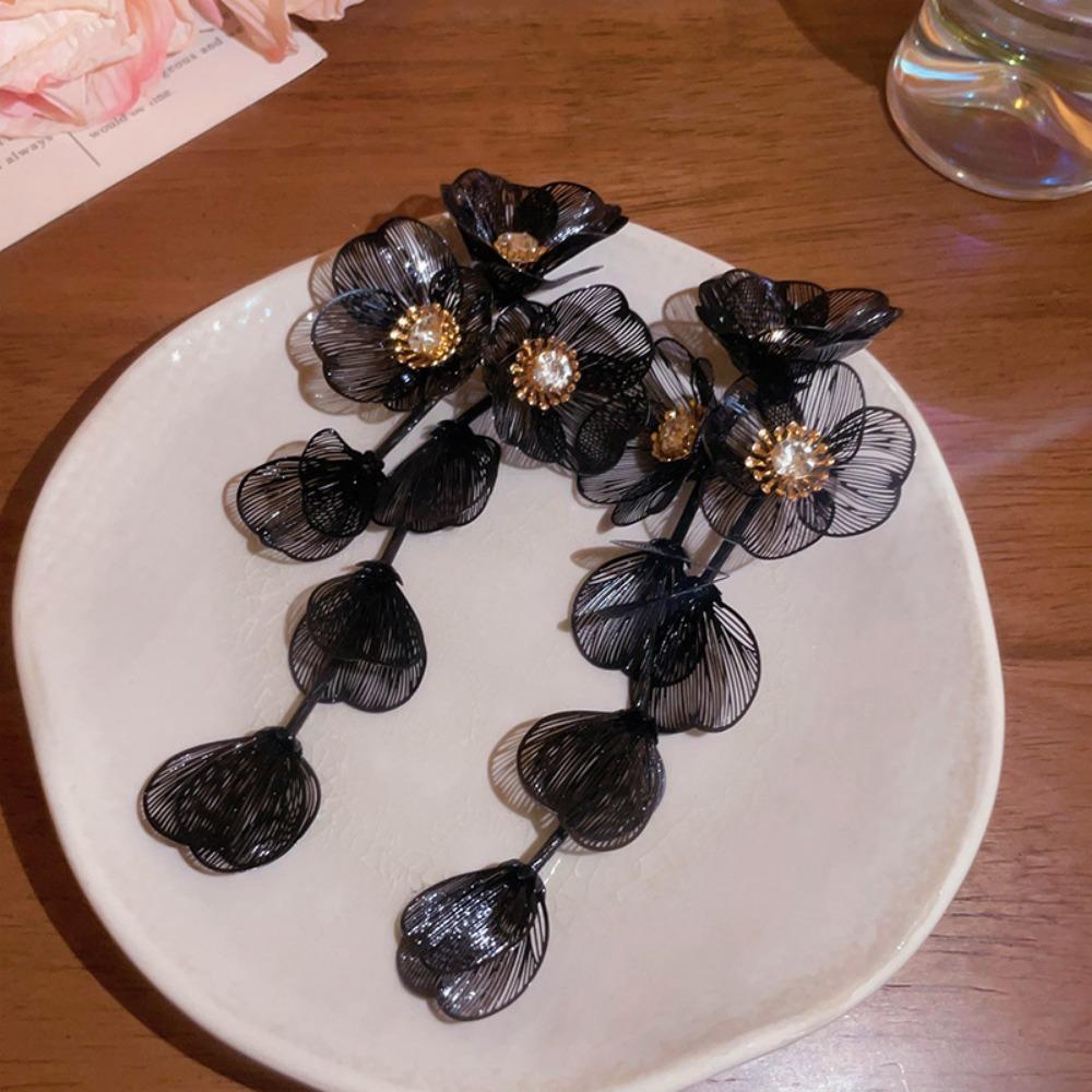 Легкие роскошные женские серьги, темпераментные серьги-гвоздики, корейские серьги с большими цветами и длинными кисточками для вечеринки