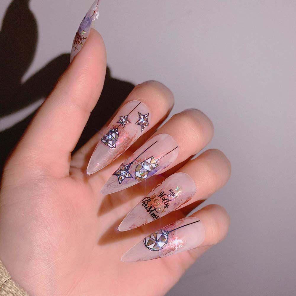 Наклейки в виде лазерных снежинок Украшения для ногтей Рождественские наклейки для ногтей Рождественские наклейки для ногтей