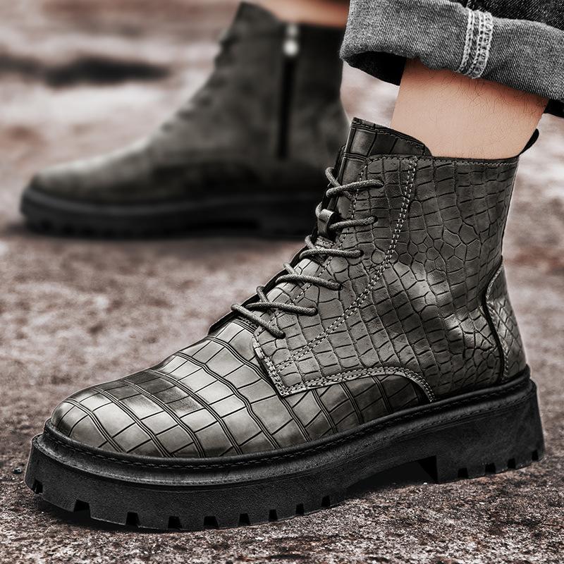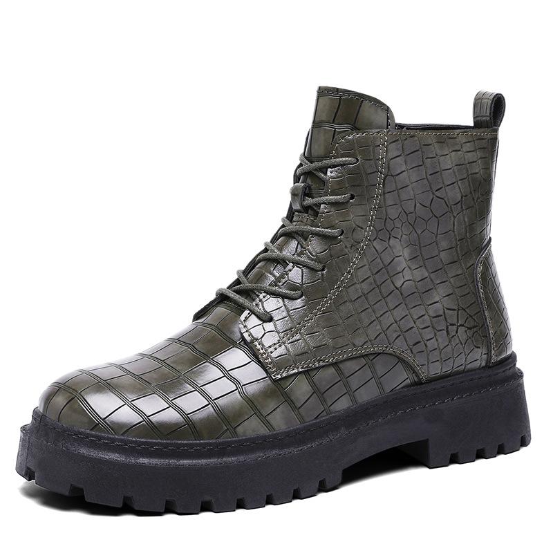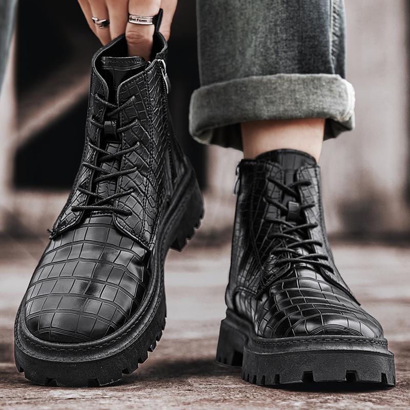 Ботинки мартин мужские одинарные ботинки новые короткие ботинки черные платформа ретро британский стиль узор крокодила мужская обувь