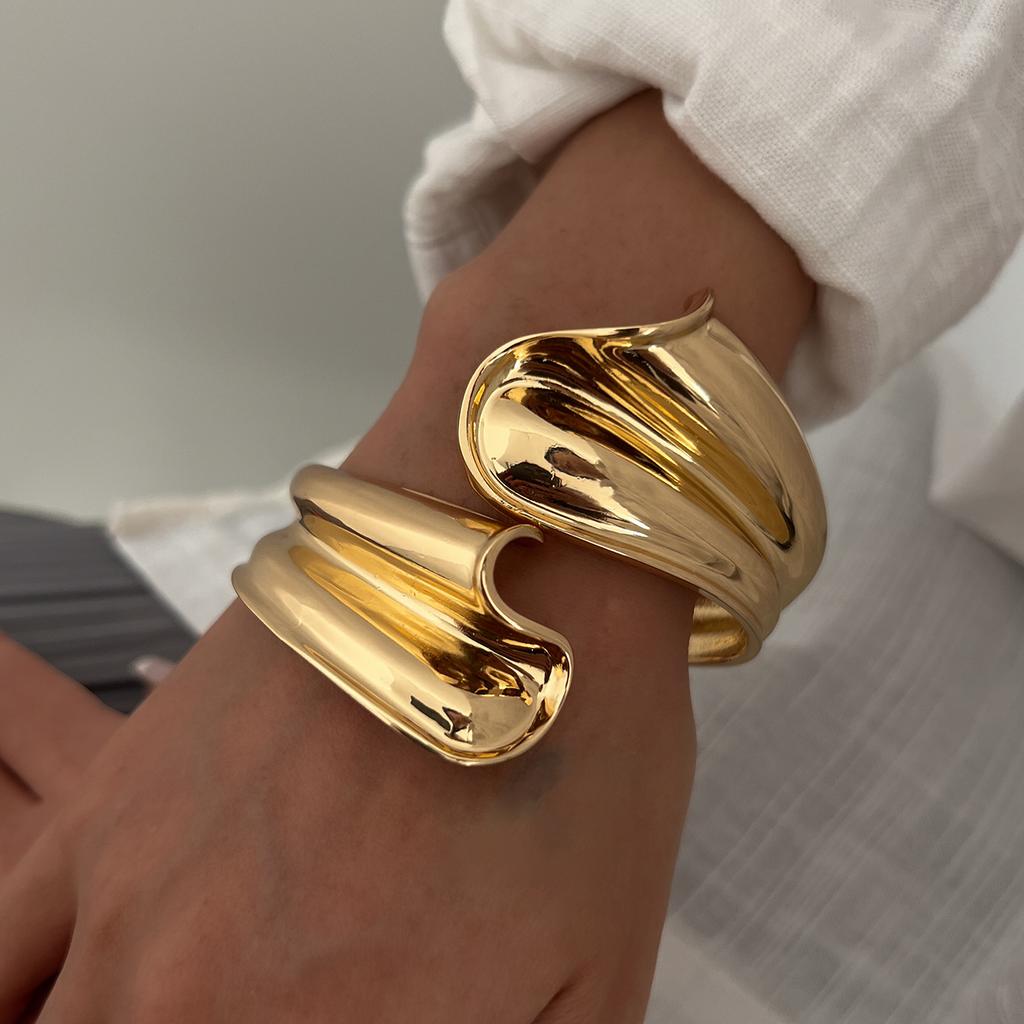Трендовый преувеличенный браслет, нишевый свет, роскошь, высококачественные ювелирные изделия, женский плиссированный браслет с зеркалом, открывающийся
