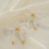 INS простые и универсальные серьги-пусеты с бантом из жемчужных бусин, женские французские ретро, высококлассные плетеные вручную