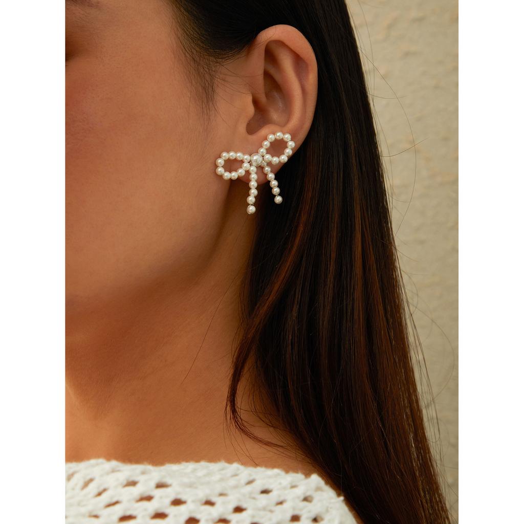 INS простые и универсальные серьги-пусеты с бантом из жемчужных бусин, женские французские ретро, высококлассные плетеные вручную — купить товар онлайн с бесплатной доставкой до всему миру!