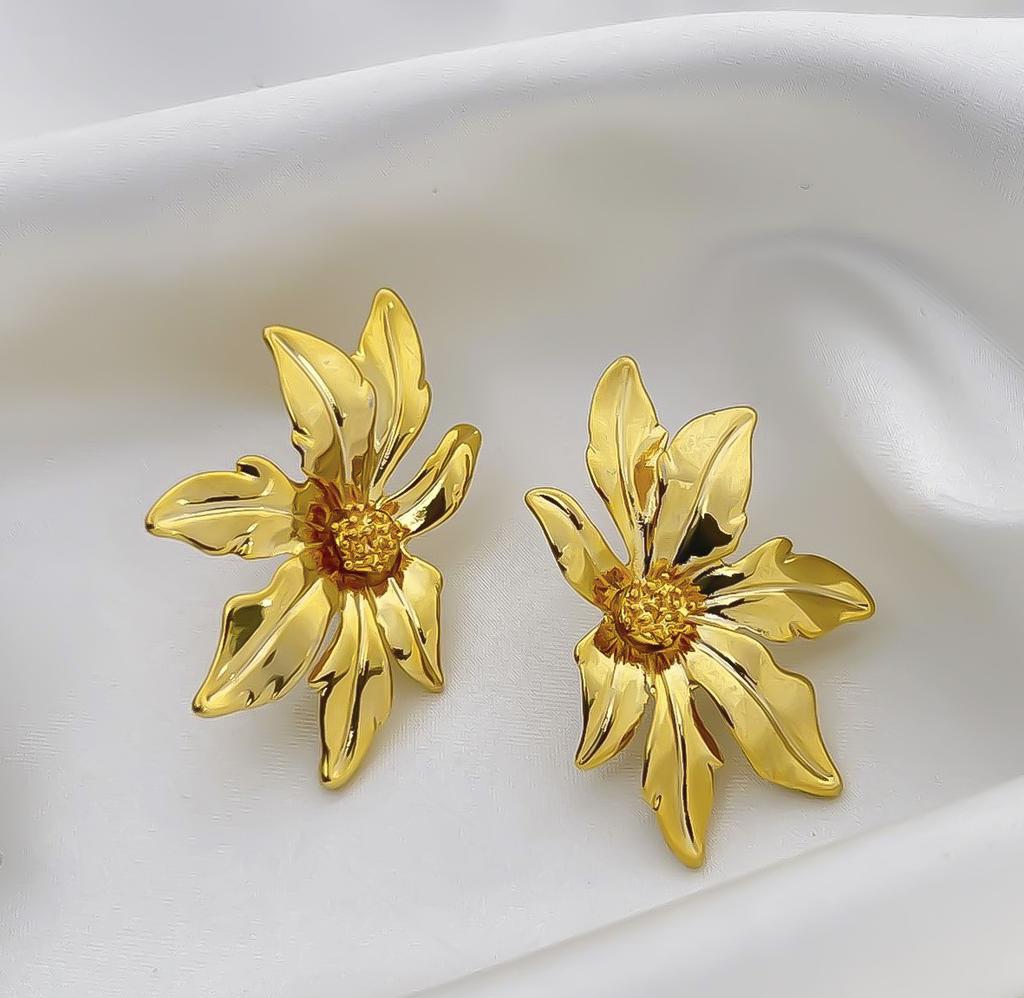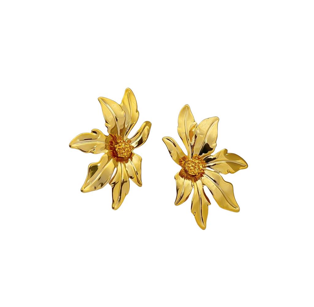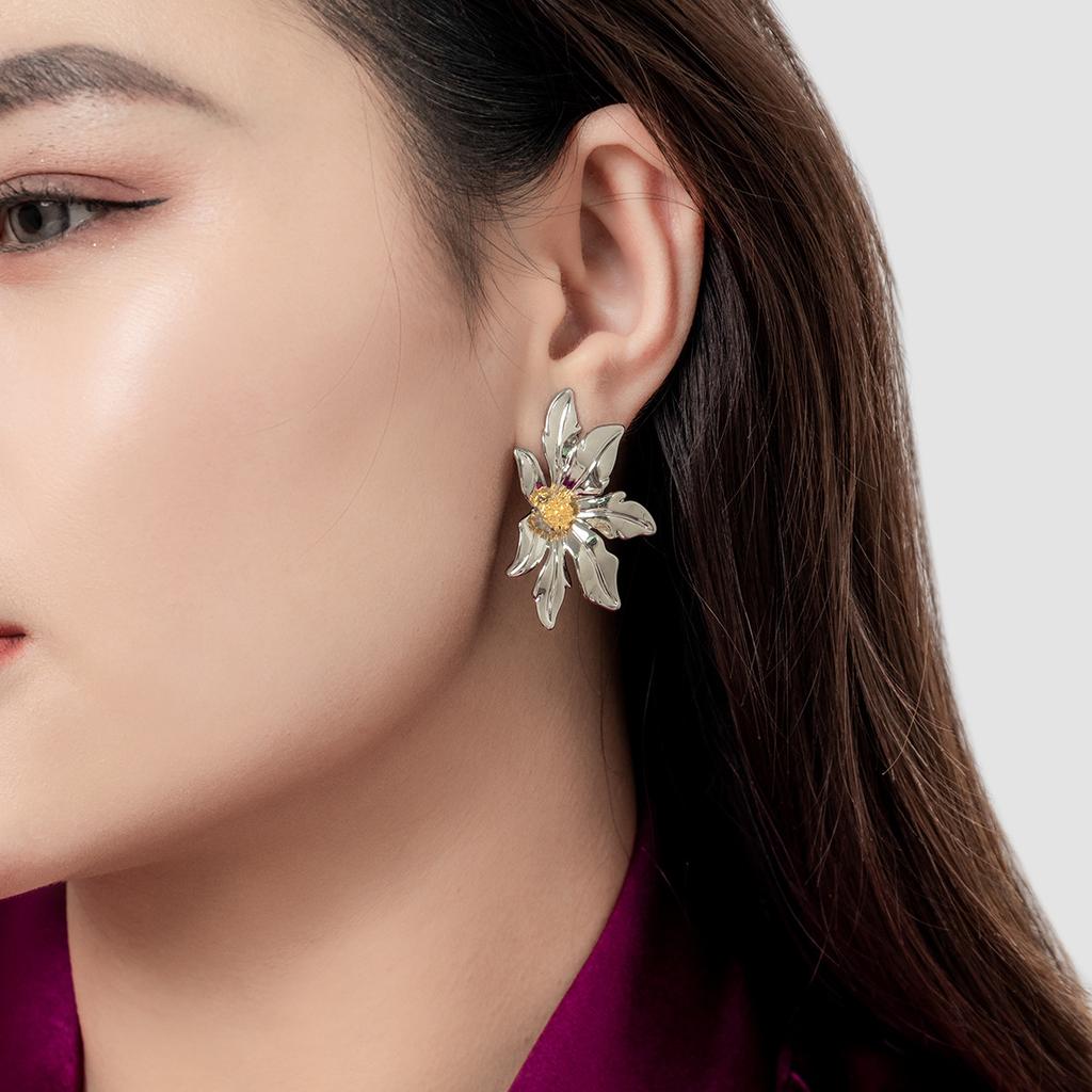 Copper-plated 18K gold light luxury premium contrasting flower stud earrings female S925 silver needle exaggerated personalized ins earrings
