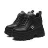 Женская обувь на высокой платформе 10 см, флисовая обувь для теплых зимних видов спорта, черные туфли для папы, низкие сапоги и кожаная обувь для женщин