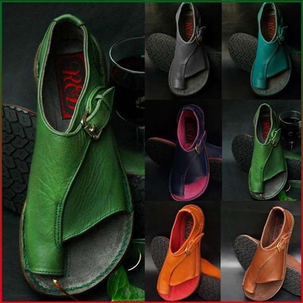 Летние модные женские сандалии больших размеров с пряжкой в стиле ретро, однотонные туфли на плоской подошве, женские туфли — купить товар онлайн с бесплатной доставкой по всему миру!