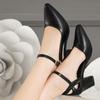 Однотонные сандалии с пряжкой, летние женские студенческие универсальные сандалии в стиле феи, Baotou, женские туфли на высоком каблуке с неглубоким носком