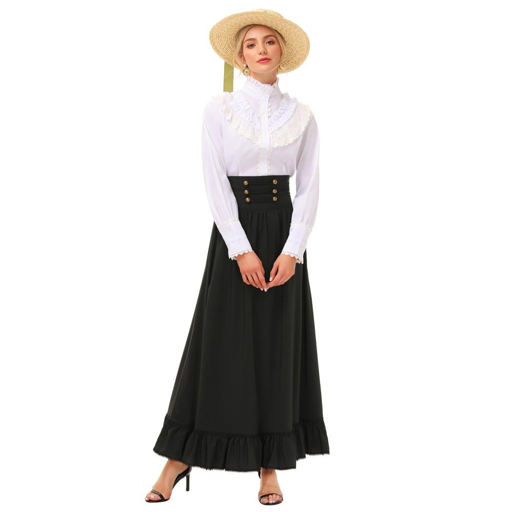 Женская распашная юбка в стиле Ренессанс с высокой талией и рюшами по подолу, макси-юбка, винтажные длинные юбки