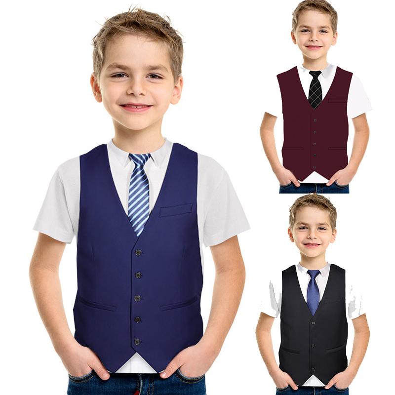 Детские футболки, забавный искусственный костюм, повседневная одежда с короткими рукавами, футболка для мальчиков и девочек