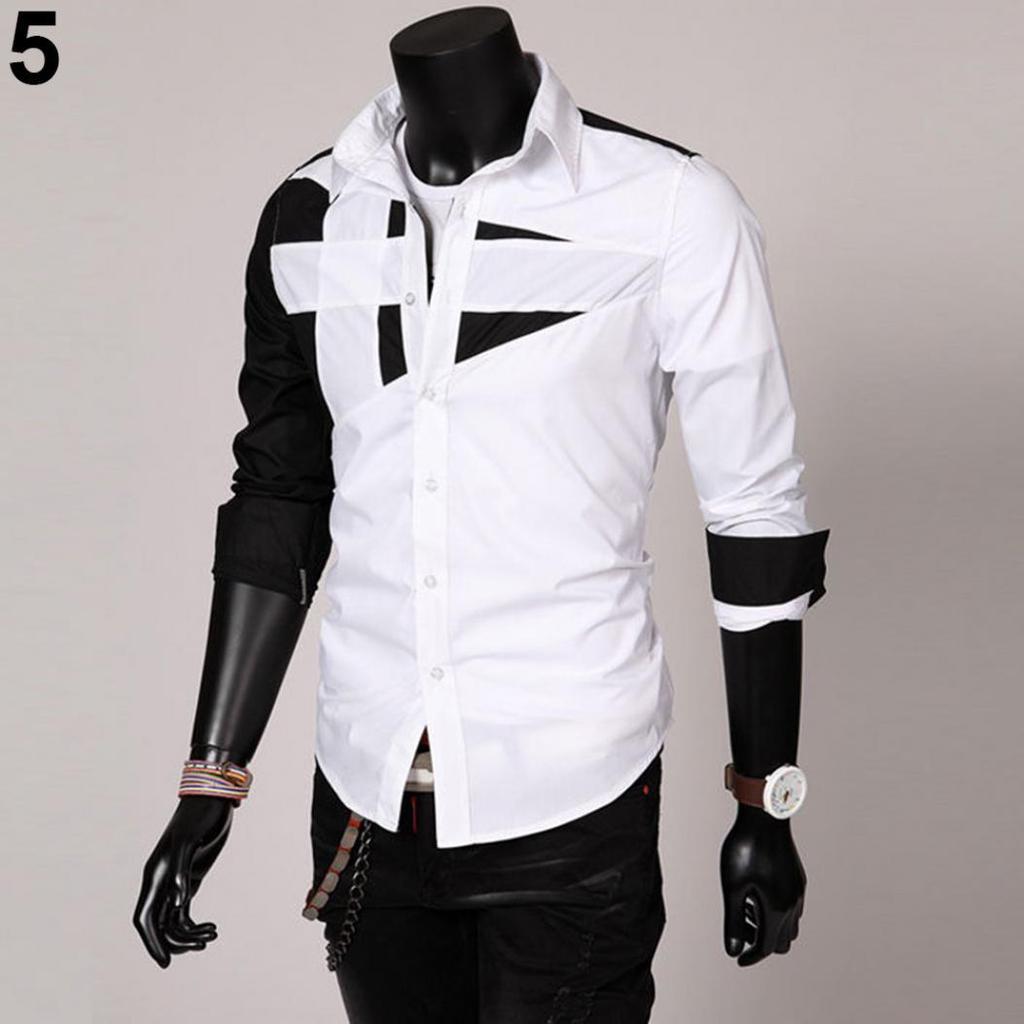 Мужская мода сексуальная приталенная цветная лоскутная рубашка с отложным воротником и длинным рукавом — купить товар онлайн с бесплатной доставкой по всему миру!