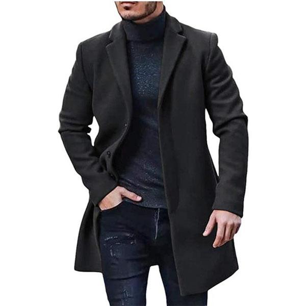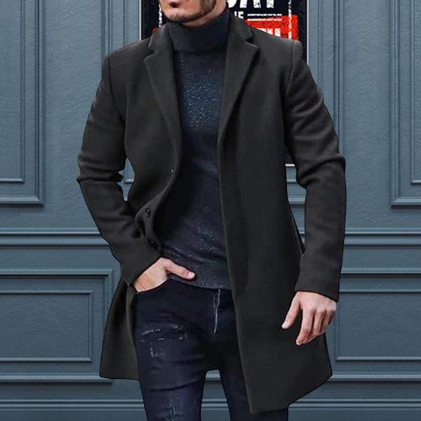 Осенне-зимний мужской плащ с отложным воротником и длинными рукавами, однотонное однобортное шерстяное пальто, универсальное пальто средней длины