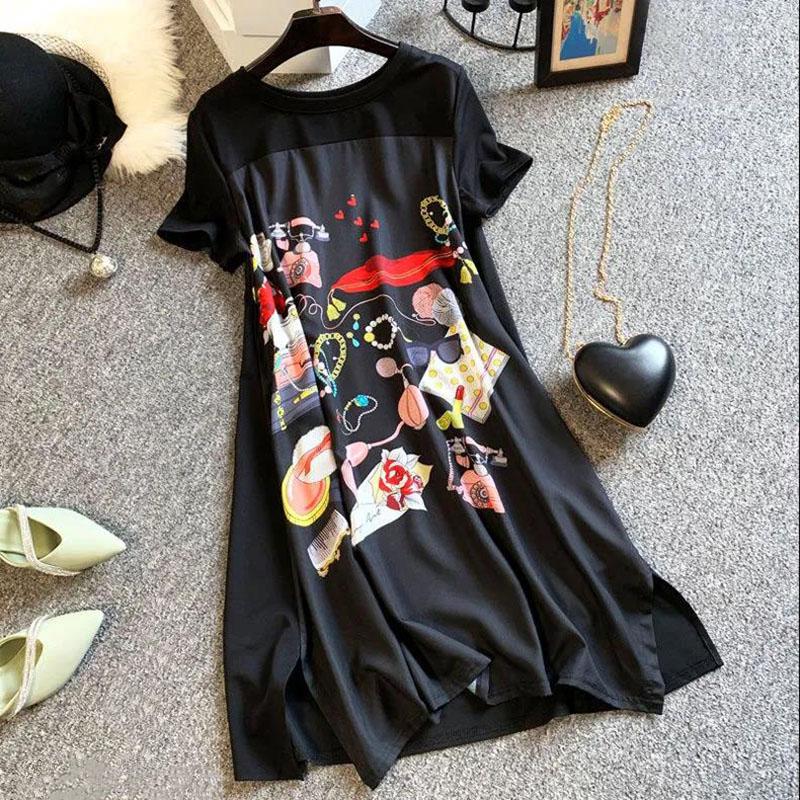 Женское свободное платье А-силуэта больших размеров, черное длинное платье-футболка, шелковистое и удобное — купить товар онлайн с бесплатной доставкой по всему миру!