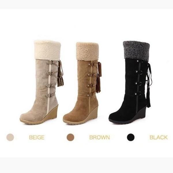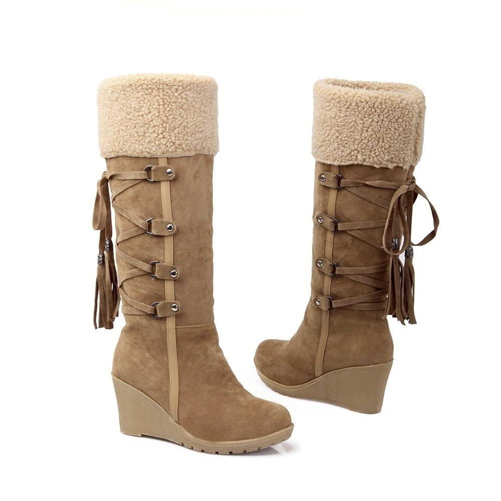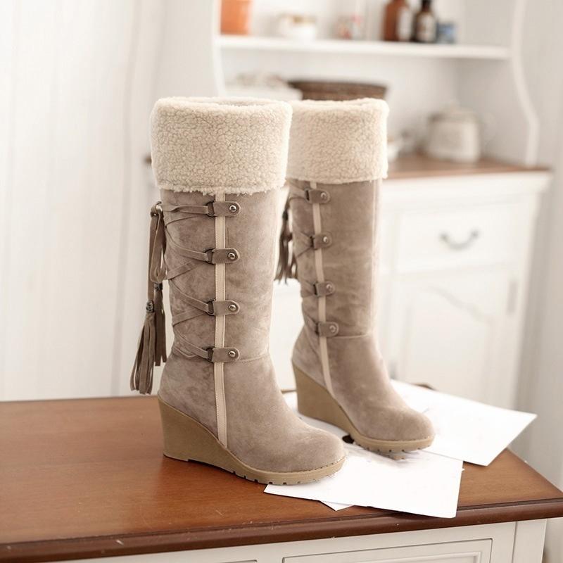 Женские зимне-осенние модные зимние сапоги, уличные теплые меховые сапоги, повседневные нескользящие ботинки на танкетке, размер 35-43