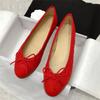 Весна 2024 года, новые женские балетки с круглым носком и бантом на плоской подошве, с закрытым носком