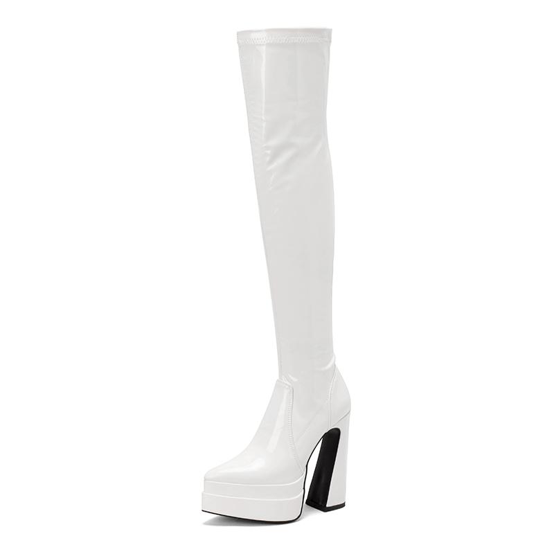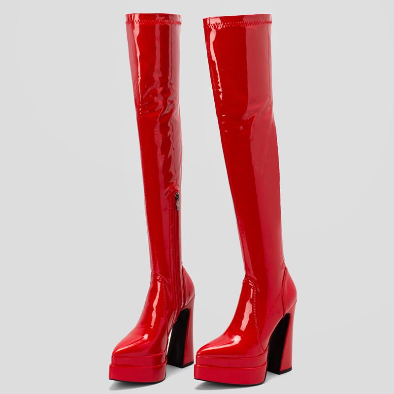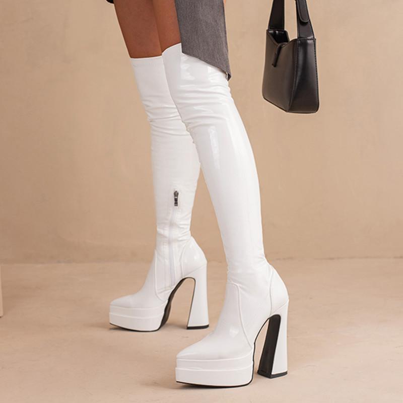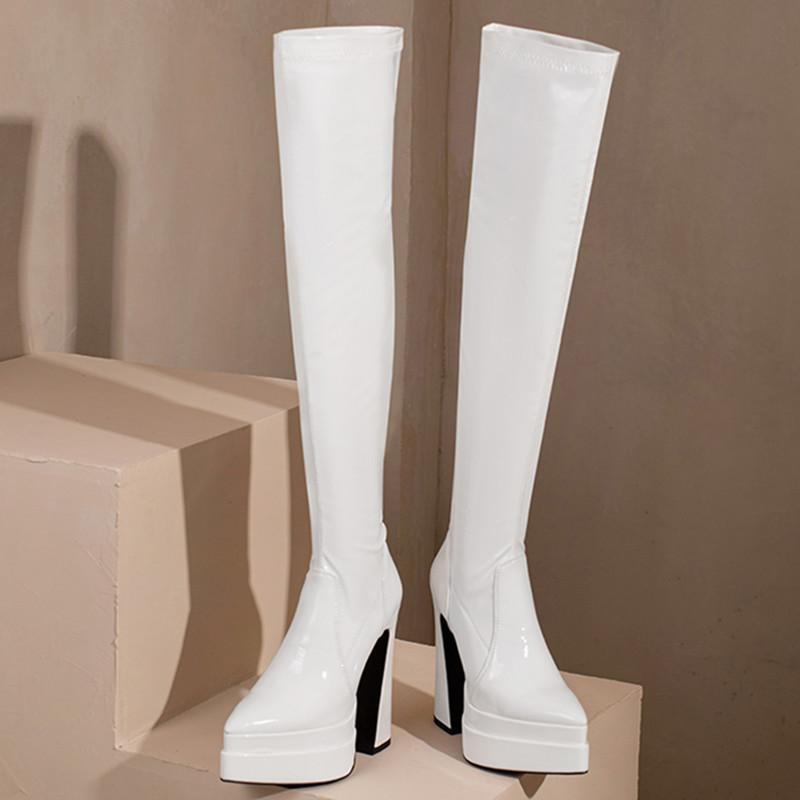Сексуальные высокие сапоги для женщин на платформе, сапоги выше колена, фетиш-обувь, женские туфли на высоком каблуке, красные, белые, зимние, длинные, эластичные