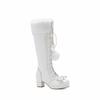 Осень-зима Новые модные женские сапоги до колена с бантом на толстом каблуке Теплые длинные сапоги Водонепроницаемая платформа Женская свадебная обувь в стиле Лолиты