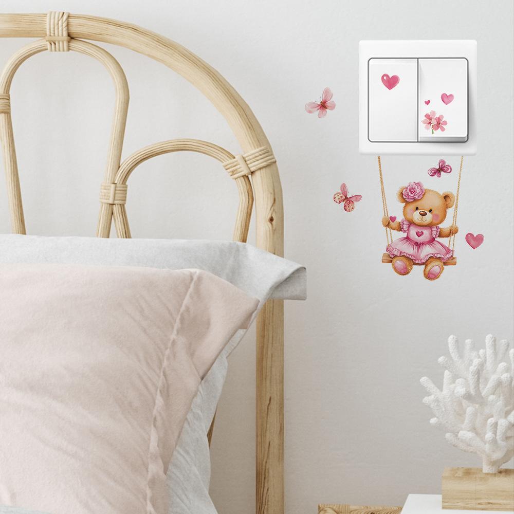 Мультяшный медведь на качелях Спальня Гостиная Выключатель Фон Украшение Наклейки на стену